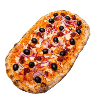 Tomaten, Mozzarella, Nduja, Oliven, rote Zwiebeln